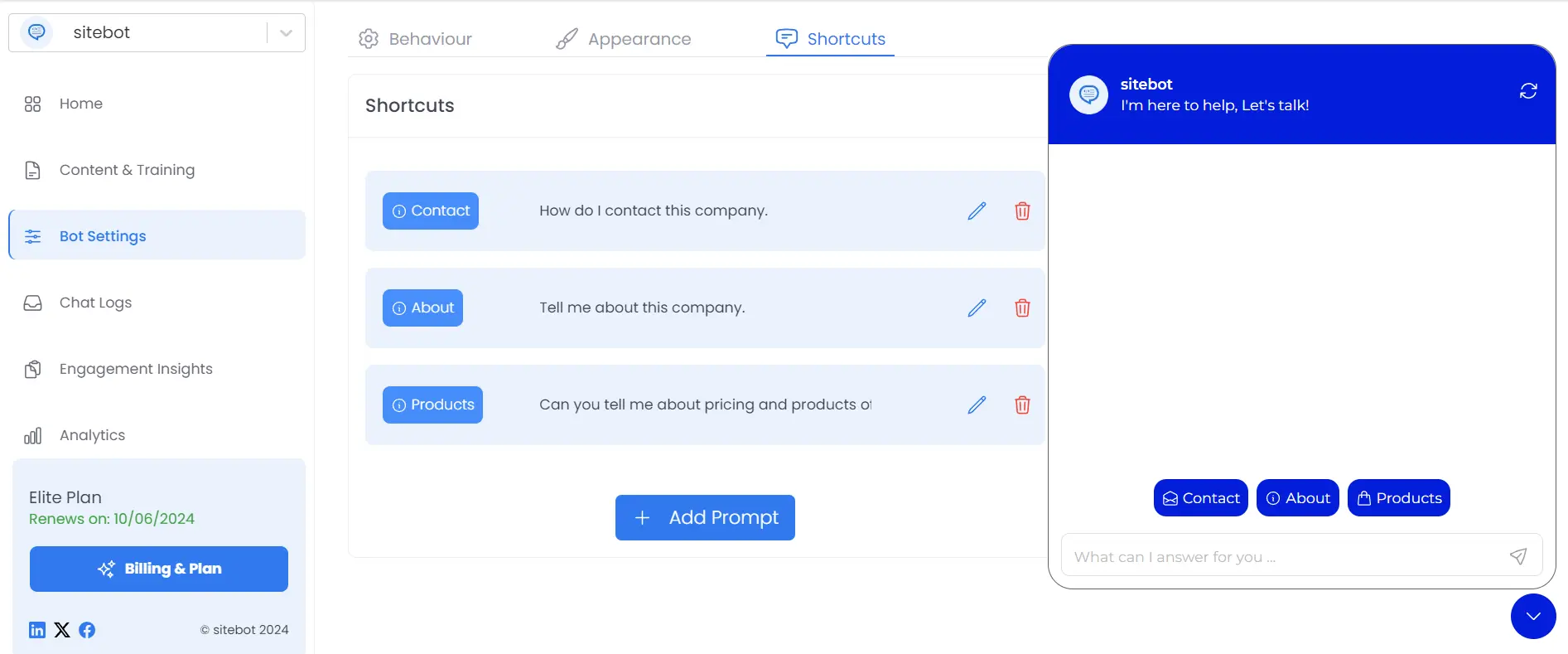 Step 6: Install sitebot's Chat Widget on Your Website