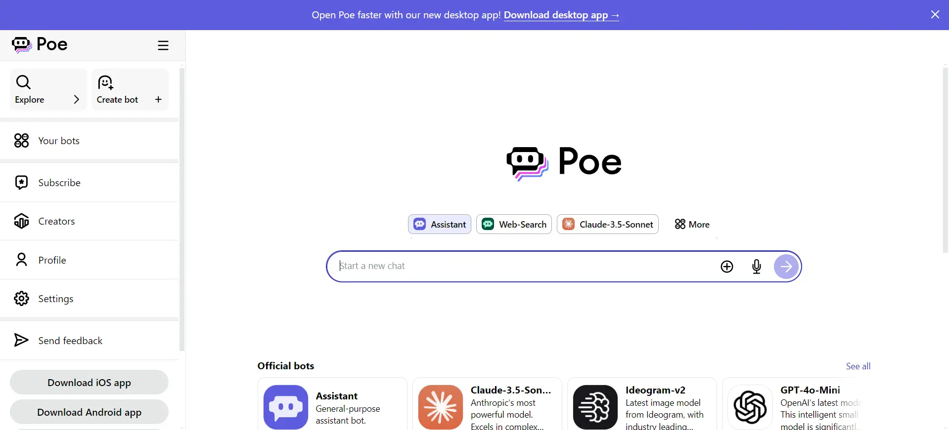 Poe.com offers a unique approach among ChatGPT competitors by providing access to multiple AI models on a single platform. Developed by Quora, Poe.com allows you to interact with different AI models, including GPT-4 and Claude. It is user-friendly and allows quick switching between multiple AI models for varying needs.