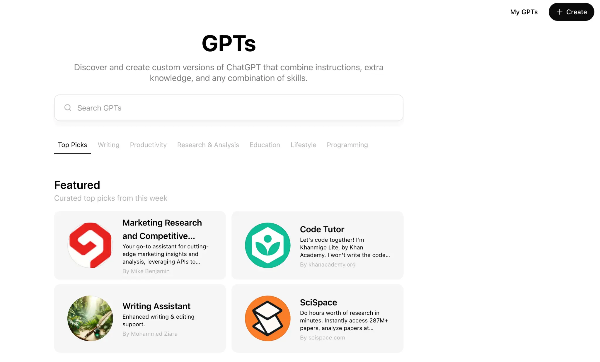 - Click "Explore GPTs" from the menu on the left to access the "My GPTs" page.