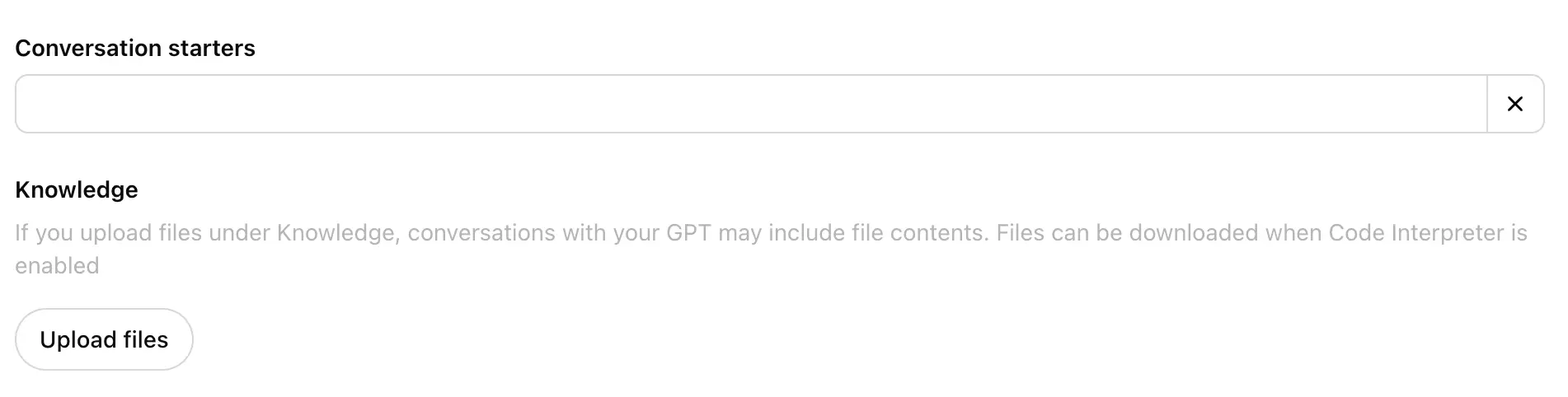 - Click "Upload files" to add materials or documents relevant to your Custom GPT.